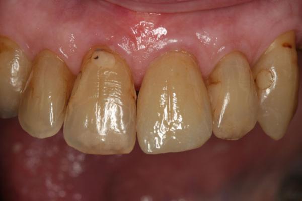 Anterior Case Before - chipped teeth, discolorations present |